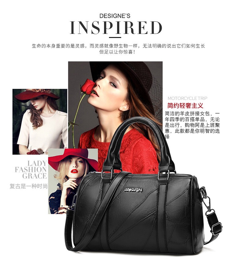 大包2019新款拼接软PU女包两款女士手提包黑色百搭单肩斜挎包代发