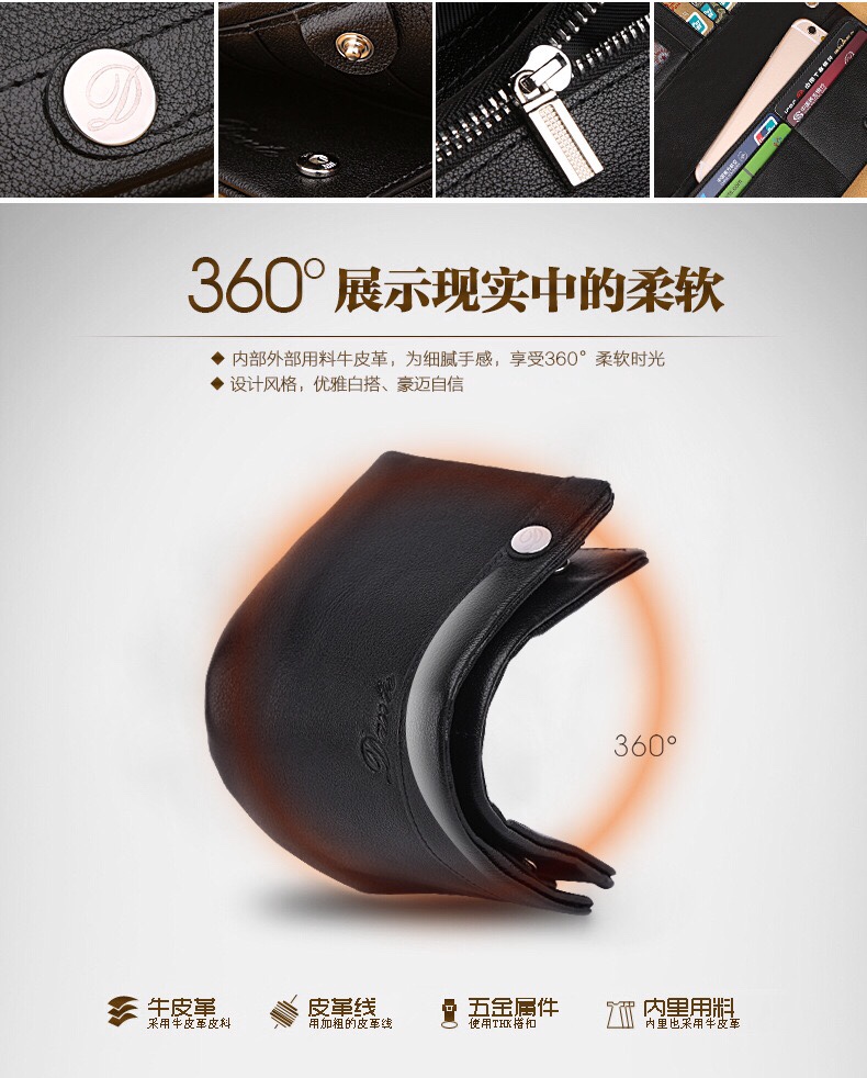一件起拍丹迪钱包 男士中长款真皮按钮多卡位手拿包休闲头层牛皮