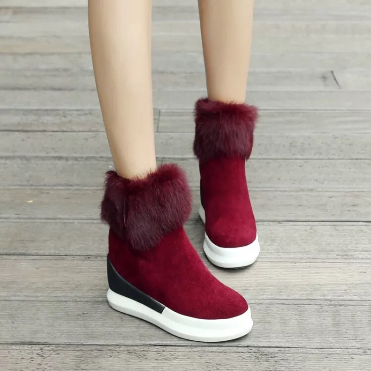 内增高新款磨砂真皮棉鞋松糕厚底休闲短靴保暖防滑兔毛雪地靴女鞋