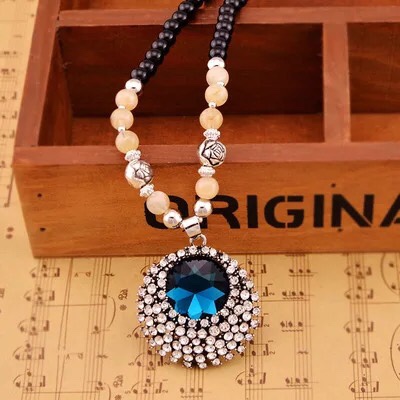 39玉珠大海星/X101毛衣链女长款吊坠百搭装饰项链 韩国水滴衣服挂件水晶配饰
