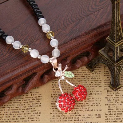 17玉珠樱桃/X101毛衣链女长款吊坠百搭装饰项链 韩国水滴衣服挂件水晶配饰