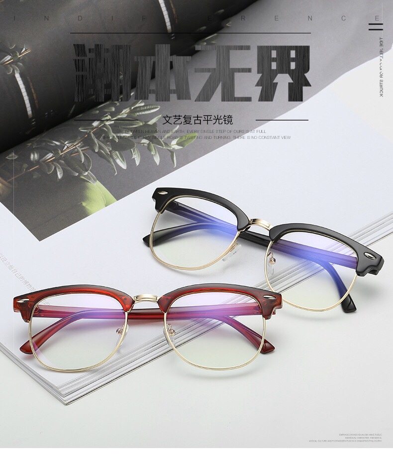 成品近视镜女有度数 男士眼镜框半框备用复古近视眼镜镀蓝膜
