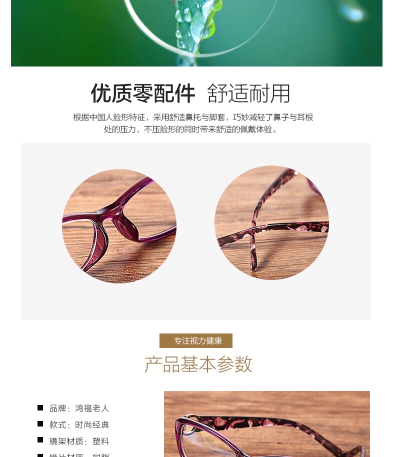 祥展新款塑料老花镜批发 抗辐射高清晰女士老花眼镜 附送便携包装