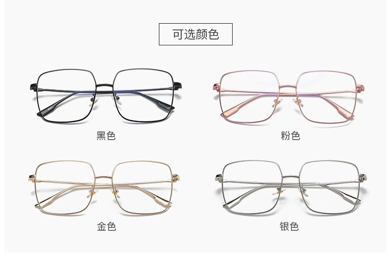 新款平光镜批发 网红同款大框四方眼镜框 圆脸显瘦素颜防蓝光眼镜