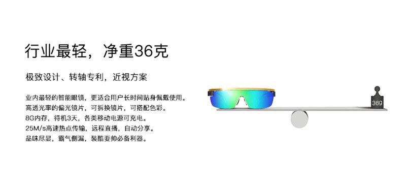智能眼镜高清户外运动语音 触控摄像录像拍照蓝牙WiFi手机直播
