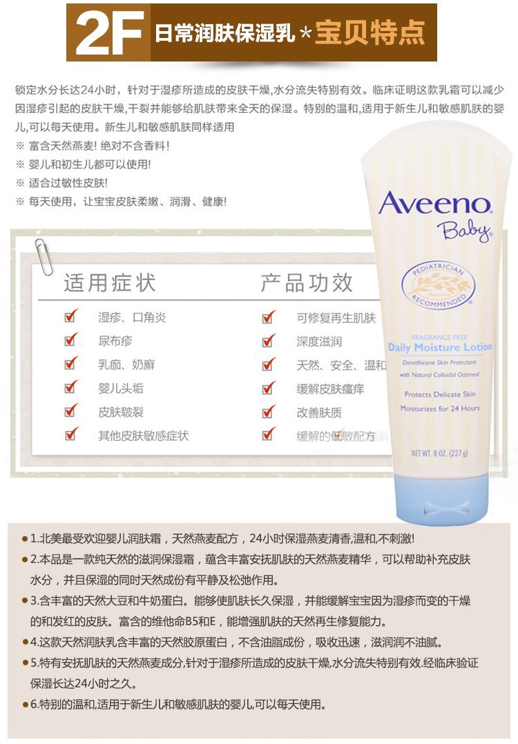 【保税仓】美国艾维诺Aveeno无香婴儿燕麦保湿润肤乳227g(浅蓝)