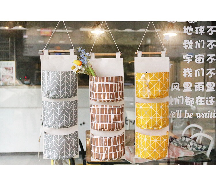 1030 棉麻防水收纳挂袋悬挂式多层挂兜布艺门后杂物储物袋收纳袋