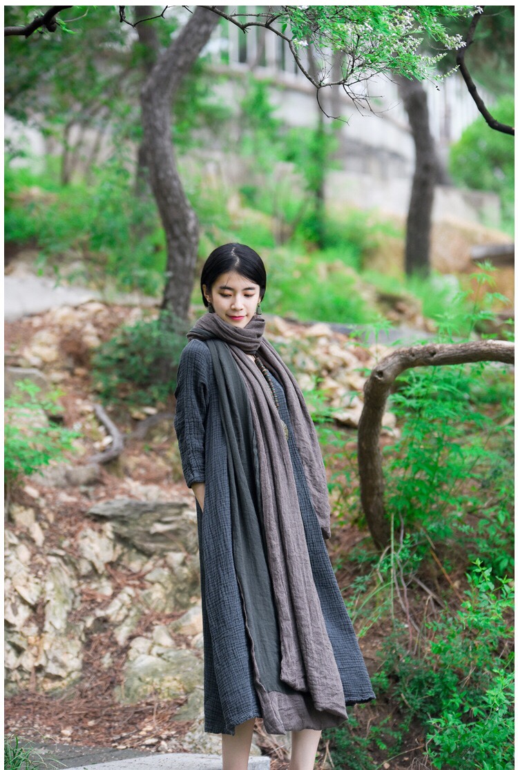 原创秋装新款女棉麻连衣裙秋季款女装文艺复古宽松时尚长裙