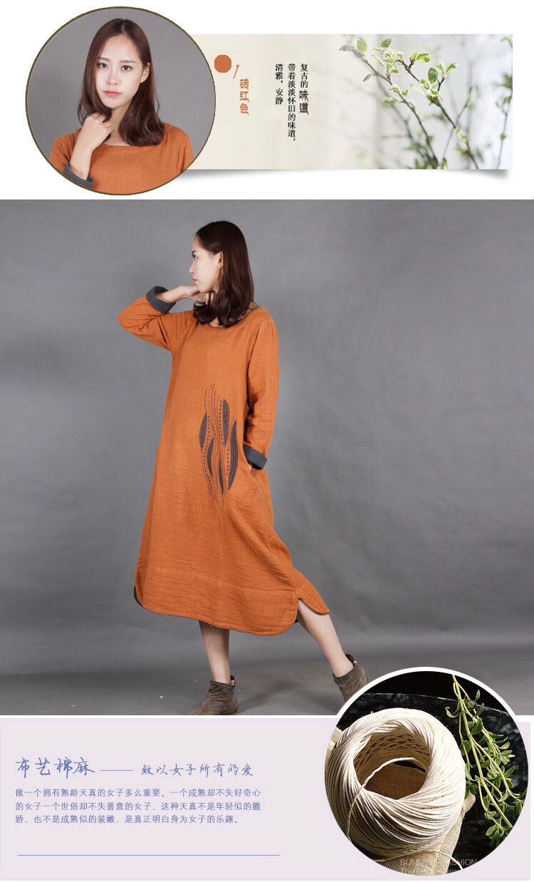 年春季新款棉麻复古风连衣裙原创长款宽松大码女装加肥长裙女