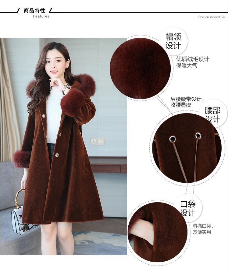 海宁羊剪绒大衣女中长款冬季新款女装连帽狐狸毛处理皮草外套