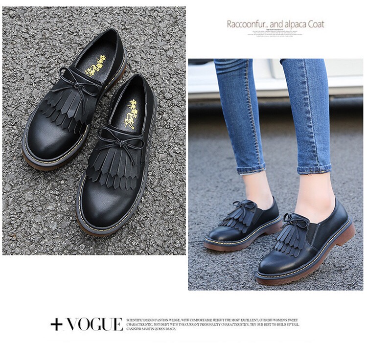 111-6秋冬新款女鞋英伦风复古流苏平底单鞋时尚漆皮小皮鞋潮