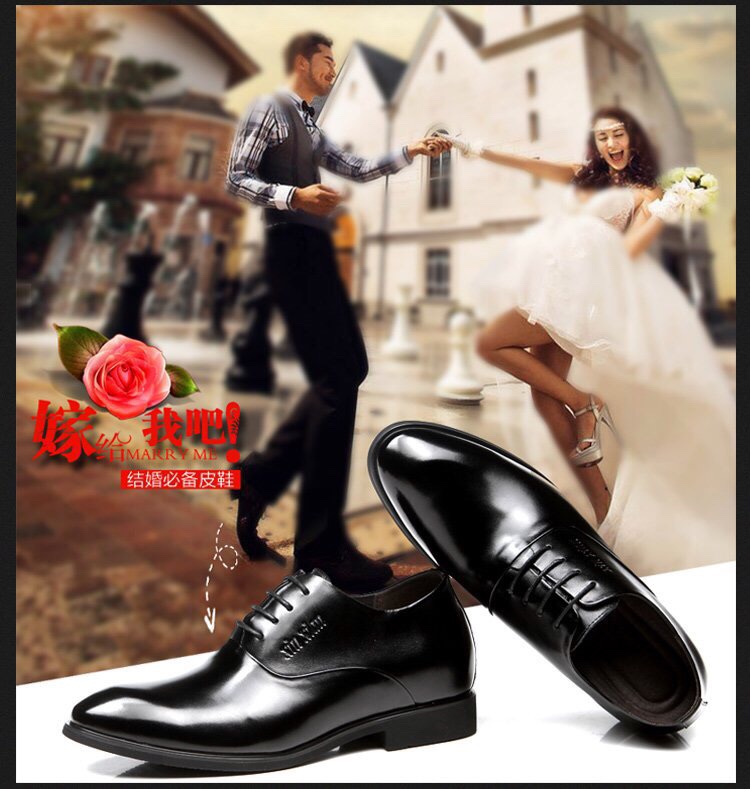 男士新款系带男尖头商务休闲真尖头皮鞋男鞋夏透气休闲男鞋结婚鞋增高鞋
