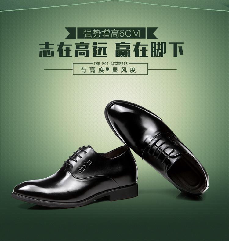 新款男鞋尖头真皮透气隐形内增高6cm男士商务正装皮鞋结婚鞋