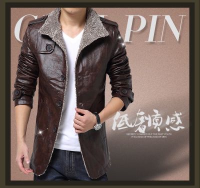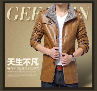 秋冬新款男士皮衣男中长款加绒男式夹克立领潮流男装休闲外套